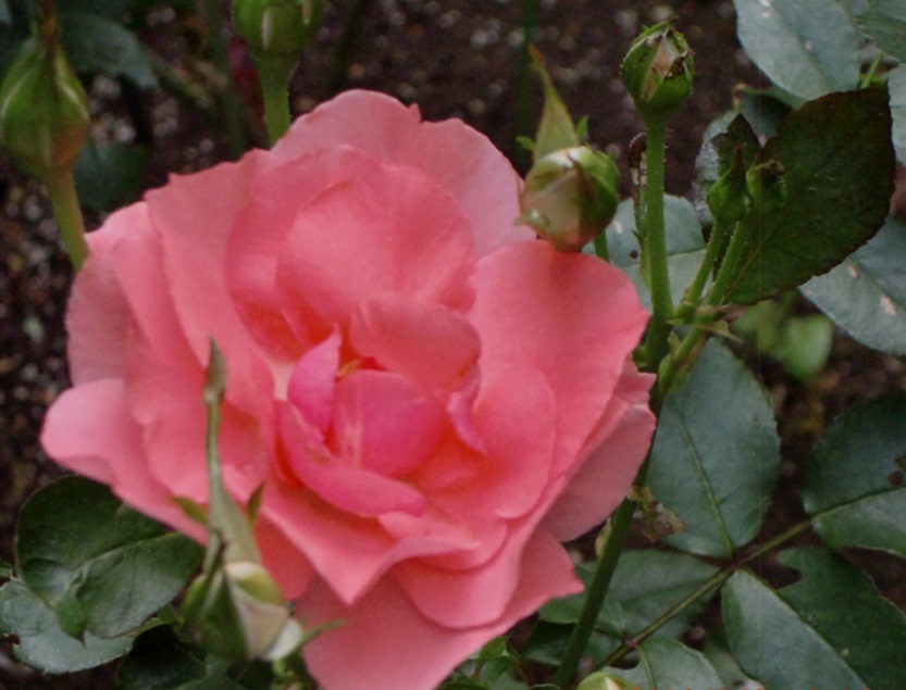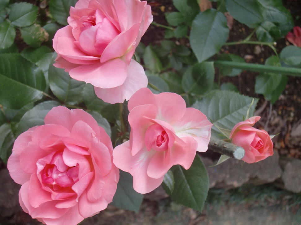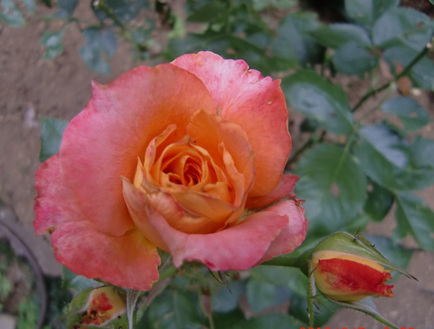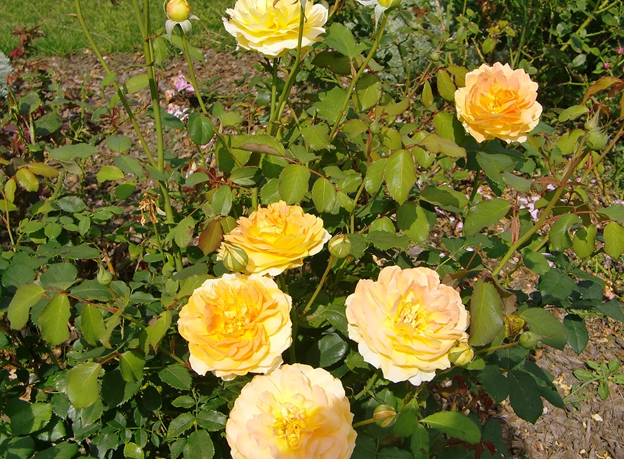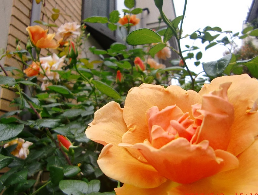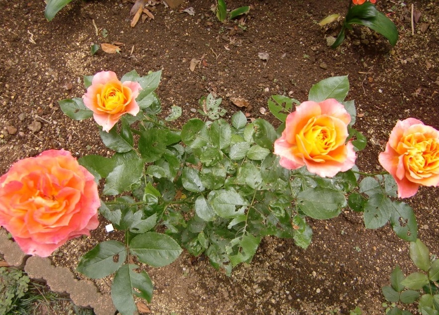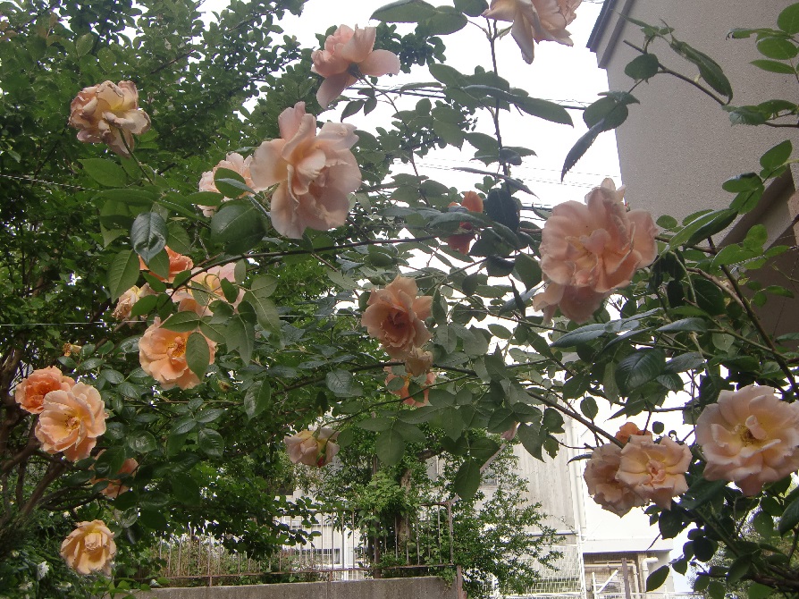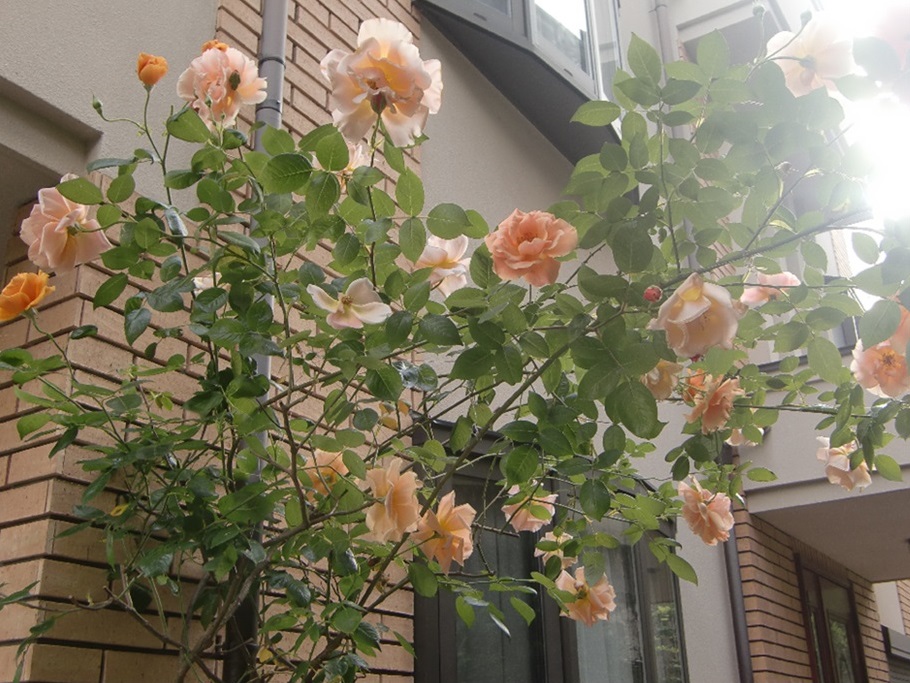 品 種 名 → ロイヤル・サンセット 花 期 : 5月中旬〜10月上旬 (繰り返し咲き) コメント : 枝は棘が少なく扱いやすく、大きめのアーチなどに誘引すると綺麗に映えます。 |