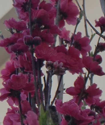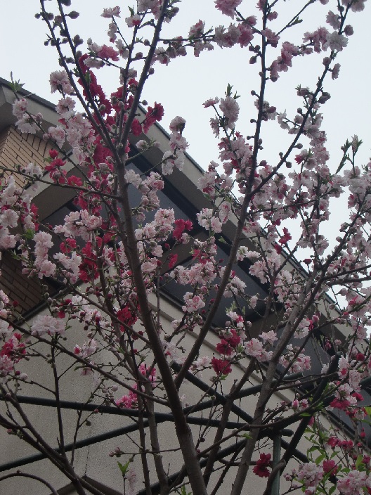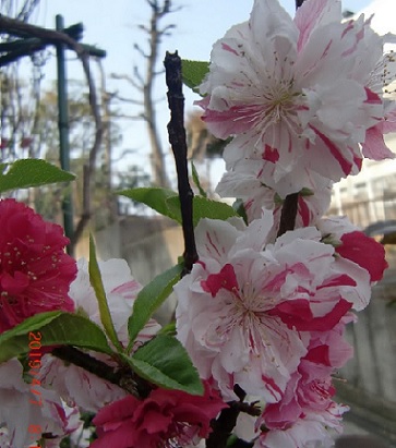 品 種 名 → 立ち源平桃(咲き分け) 花 期 : 3月下旬〜4月上旬 コメント : 1本の木に紅色と白色、紅白の絞りの花を咲かせる、八重咲きの花桃です。 |