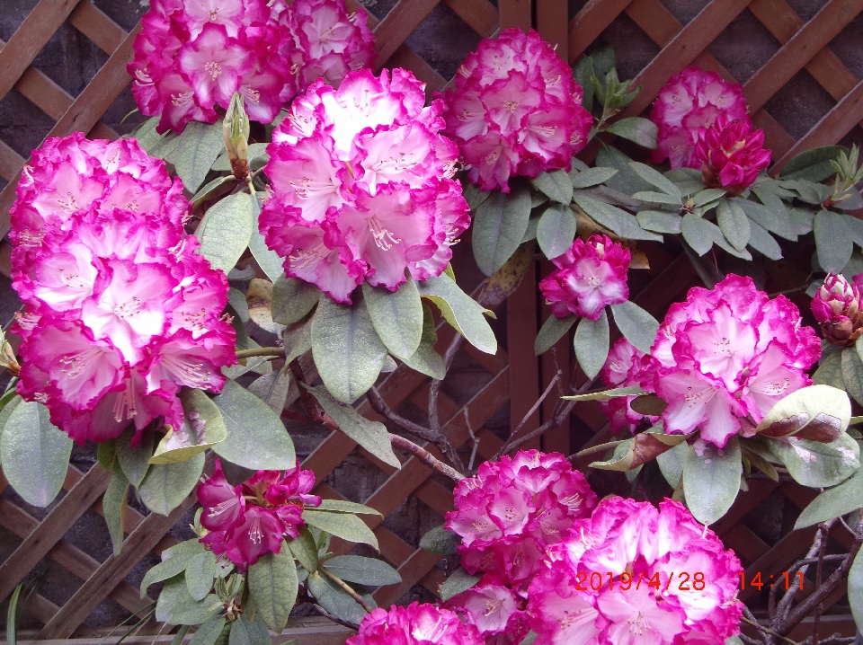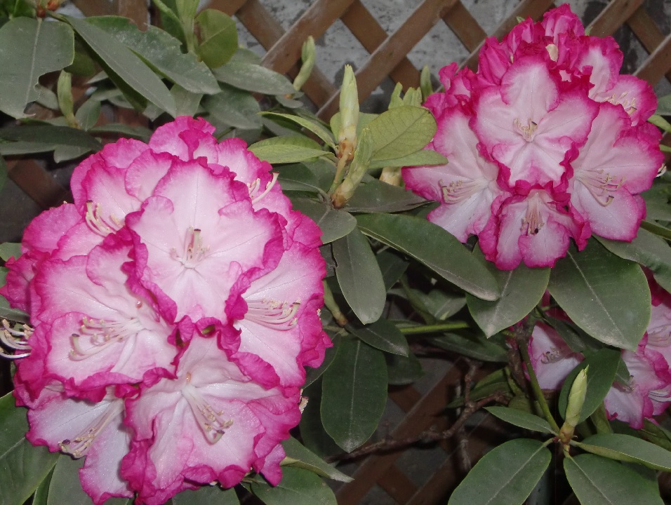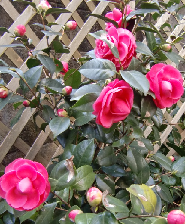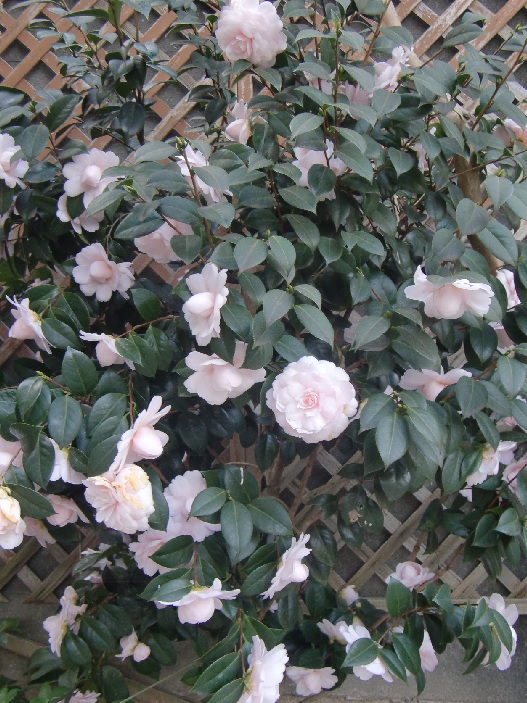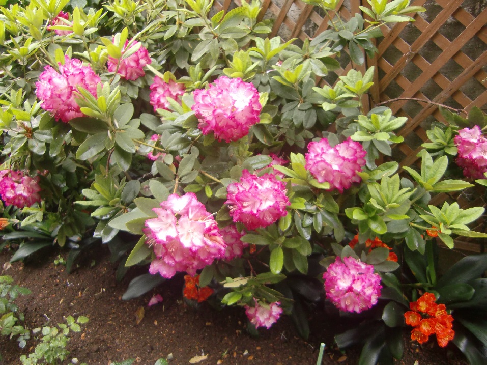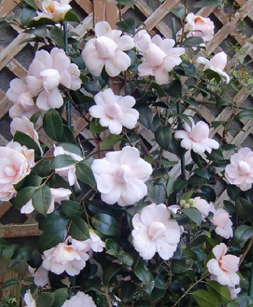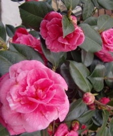 品 種 名 → 朝倉(白で縁はピンク) 花 期 : 4月中旬〜7月上旬 コメント : 11月、12月に花を咲かせる数少ない植物です。 常緑の葉の上に、ピンクや白の花を 多数つけるので目立ちます。 |