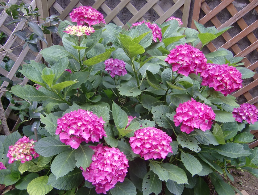 品 種 名 → アジアノオオマリ(ピンク) 花 期 : 5月下旬〜6月中旬 コメント : 上記「スミダノハナビ」の特徴に加え、土壌の酸性度によって色が変わることが 知られている。 |
