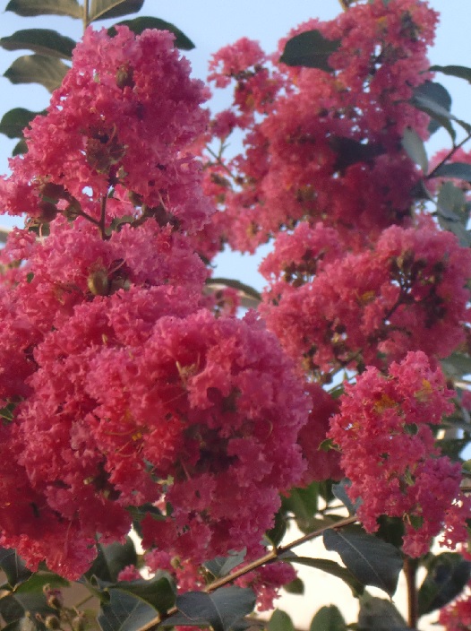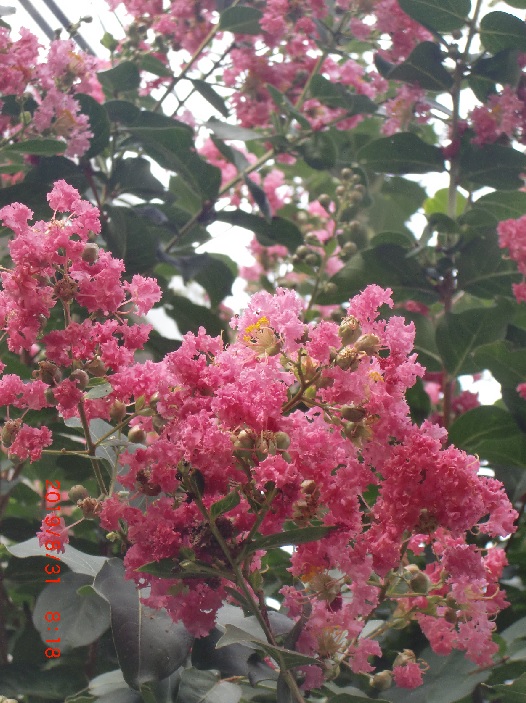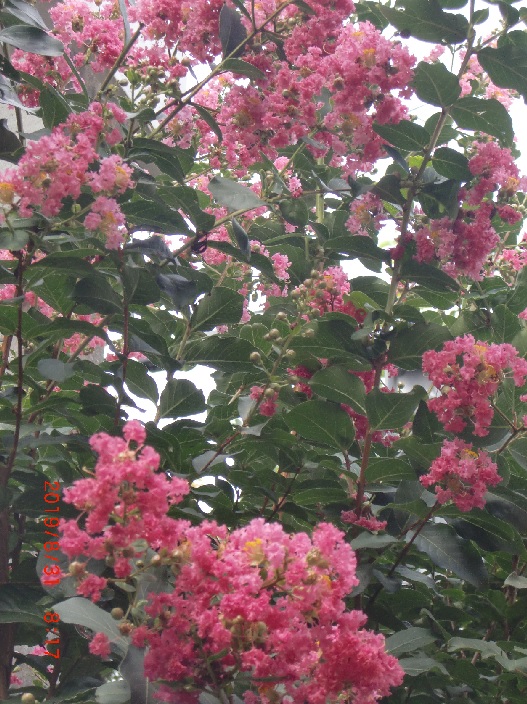 品 種 名 → 東洋の花嫁(ピンク) 花 期 : 6月下旬〜8月中旬 コメント : 放任して育てても良いが、剪定する場合は冬に枝分かれで太い方の枝を切って全体を 一回り小さくすると良い。 |